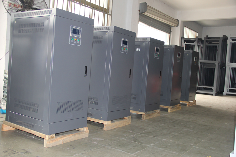 采用微電腦(MCU+PLD+12位高速AD)智能檢測,輸出指令控制電子模塊(IGBT或SCR)的快速切換,通過變壓器同頻、鎖相、正弦波疊加補償保持輸出電壓的穩定。響應速度快、無碳刷、無觸點、無機械、三相電壓自動平衡。